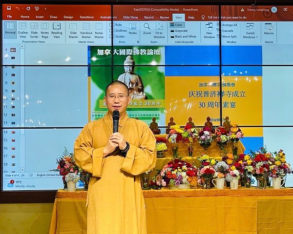 来自世界各地的法师、多伦多大学相关领域学者纷纷发言。对佛教特别是禅宗,面临新的挑战和机遇;佛教文化传播者要如何推行切实可行的传播方法等议题做了论述。同时,也对加拿大汉传佛教的传播、文化认同与融入,多元文化对佛教传播的政策支持等议题做了论述;对互联网以AI技术对佛教教育、传播等方面进行了讨论。