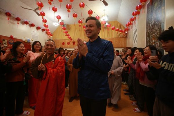 活动尾声,博励治在住持的引领下敲响象征新年祈福的大钟,寓意去旧迎新,为来年带来好运。他表示,这次新春之行让他深刻体会到中华文化的深厚底蕴,也希望未来能与华人社区保持更紧密的联系,共同推动加拿大社会的和谐发展。