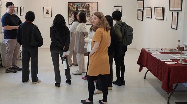 展览当天,亚太和平博物馆的统筹策划刘美玲带着八位义工前来。
