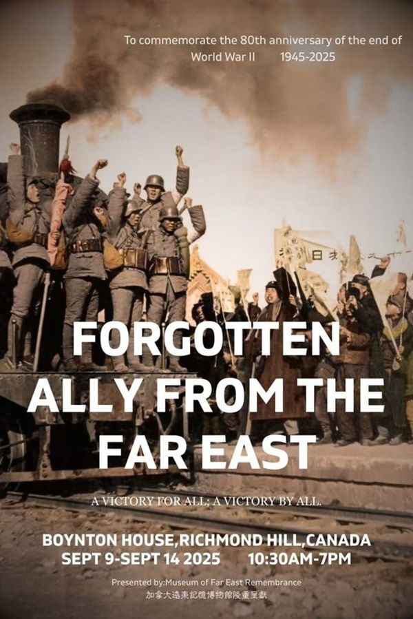 (《世界华文媒体》记者勾芍人、《加拿大和世界报道》记者赵品成、《健康生活报道》记者马丽霞多伦多联合报道)2025年9月9日,秋风清凉,阳光缓缓洒落在大多伦多地区Richmond Hill的Boynton House。白、红色的老宅在绿草和枫叶的映衬下显得格外庄严肃穆。而在这里,正上演着一场跨越八十年的记忆重现——抗战胜利80周年文物文献展览。