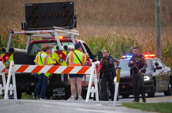 9月17日,宾夕法尼亚州北科多鲁斯市多名警察被枪杀后,宾夕法尼亚州警察和紧急救援人员封锁了一条道路。Matt Slocum/The Associated Press