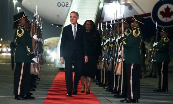 加拿大总理马克·卡尼于2025年11月21日(星期五)抵达南非约翰内斯堡,出席二十国集团峰会。THE CANADIAN PRESS/Sean Kilpatrick