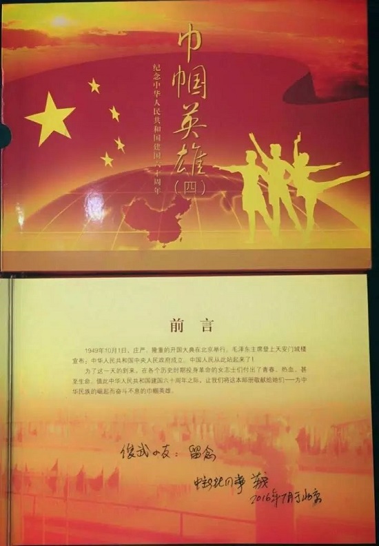 其实,我认识苏戈老大姐,还是近半年的事。韩凯大哥为中新社同仁建了个群,大家在群里有话好好说,有事招呼声,不谈国事,其乐融融。说来也巧,这么多人在群,大姐加了我,互加好友后大约聊了个把星期,老大姐给我们寄来了一本建国60周年官邮出的《巾帼英雄》邮册,在册的人物自不必说了,都是响当当的女英雄,打开一看,苏戈大姐赫然在册。