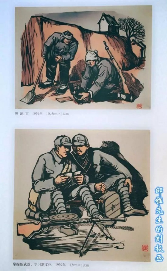 在戈壁的世界,顽强而优雅地活着。这大概是我对苏戈大姐和她的先生邹雅的最深印象。听大姐在今天的来信和随寄的邹雅百年画册中讲,邹先生出生于1916年的江南书香之家无锡,20岁怀揣寻找光明、自由的梦想,投身革命圣地延安,开始用画笔和刻刀为民族解放而歌而泣。与他同时代的丁铃、孙犁这些由解放区走来的艺术家一样,他的画作的主题,绕不过的太行山、挥不去的战火硝烟、山一般沉重的主题、戈壁样的灵魂葛碍,笔触却如青鸟一般在自由歌唱,对光明、美好、自由的向往,从画质的石缝里升腾,用轻盈冲淡着血色与残忍。因而,在后来被打成文艺黑线到干校、到农村、到煤矿进行触及灵魂的改造,也就难以幸免,甚至在被打倒,重新站起来后,在他艺术创作的巅峰盛年,在被迫赴矿井寻找所谓创作题材时,命丧“黄泉”,把年仅58岁的生命化作地火,永远埋在大地之下。但一代艺术巨匠所留在人间的艺术痕迹——那些向往光明、自由的作品,亦如山岗上的参天大树,屹立在森林之上,活在时间的视野顶端。