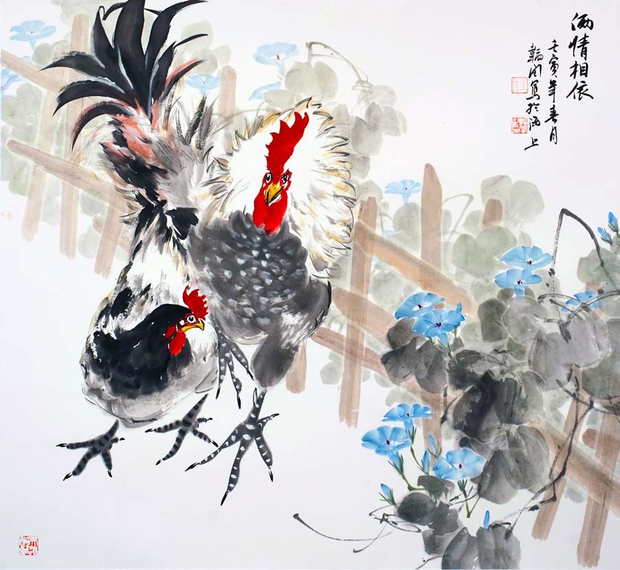古人说,善琴者通达从容,善棋者筹谋睿智,善书者至情至性,善画者至善至美,善诗者韵至心声,善酒者情逢知己,善花者品性怡然。王韬闰的作品,是一种儒雅到高傲的存在。他最擅长画的鸡,总是仪态从容,雄姿英发,高傲中散发着儒雅,令人印象深刻。