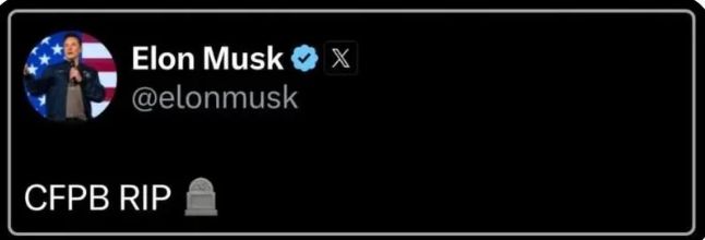 马斯克宣布“CFPB RIP”,CFPB官网一度瘫痪