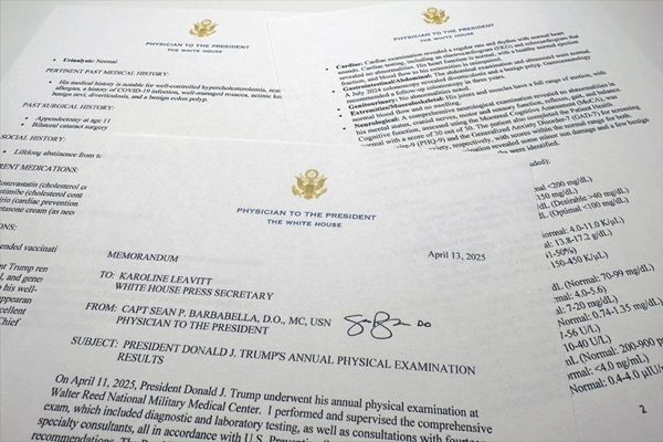 巴巴贝拉称,特朗普在心脏、肺部、神经系统等方面都展现出“卓越的健康状况”,并且“日常活动频繁,包括会议、公开露面、媒体采访和高尔夫赛事中的‘频繁胜利’”。