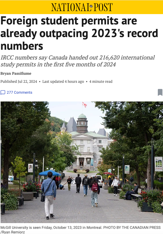 2023年加拿大向印度学生发放了278,335份学签,占所有学签近35%。