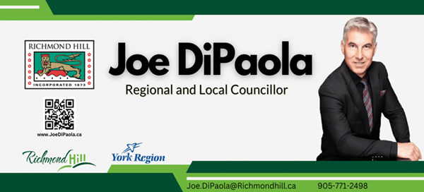 Richmond Hill Regional and Local Councillor Joe DiPaola welcomes residents to stay informed about his upcoming events or to reach out for assistance: